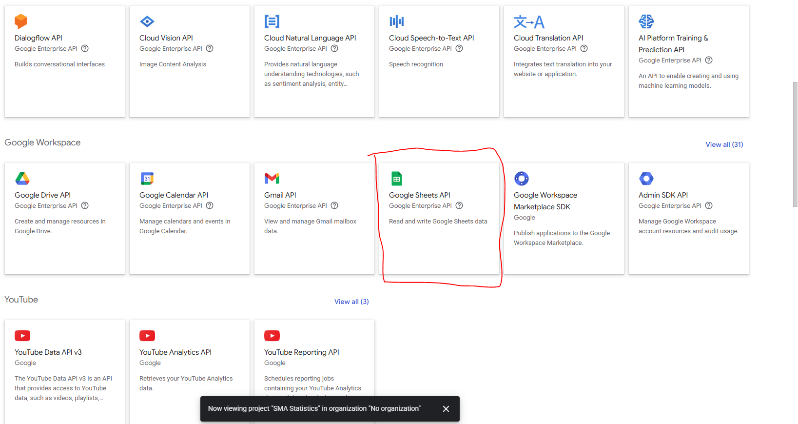 Click **Google Sheets API**